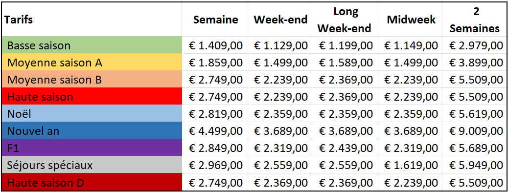 Eau-chauffage-électricité : 70 € / nuit en été, 100 € / nuit en hiver